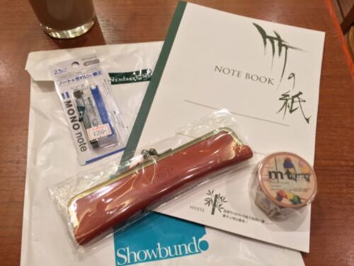 調布の勝文堂で買いました。 竹の紙ノート、MONO柄の修正テープ、LIFEの一本差しがま口ペンケース、鳥の図鑑マスキングテープ。 ところで、この調布パルコにくっついた勝文堂、なかなか面白い文房具店です。 ショーウィンドーに昔のロディアのブロックメモが…