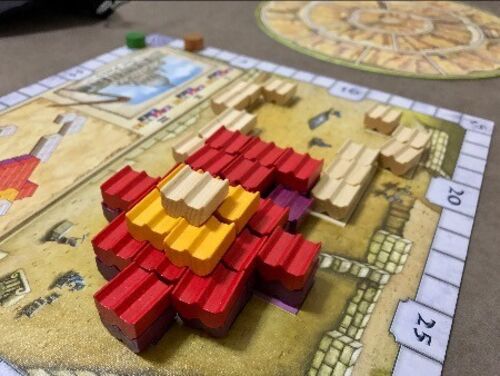 恐ろしく未来まで見透さなければならない半アブストラクトゲームでした。プリミティブな歓びと計算が両立する面白いドイツ的ボードゲーム。 建築する建物により難易度が変わるのも面白い。 2人でプレイしたので、多人数でのプレイ感の違いもぜひ味わいたいと…