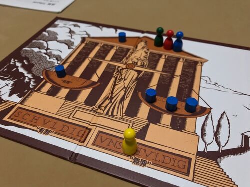 「古代ローマの新しいゲーム/Neue Spiele im alten Rom」に収録されている14のゲームのうち、「法廷/Tribunal」を遊びました。後の(同じクニツィアによる)「クオバディス」に影響を与えたかもしれないゲーム。被告人(コマ)がいて、裁判にかけられます…